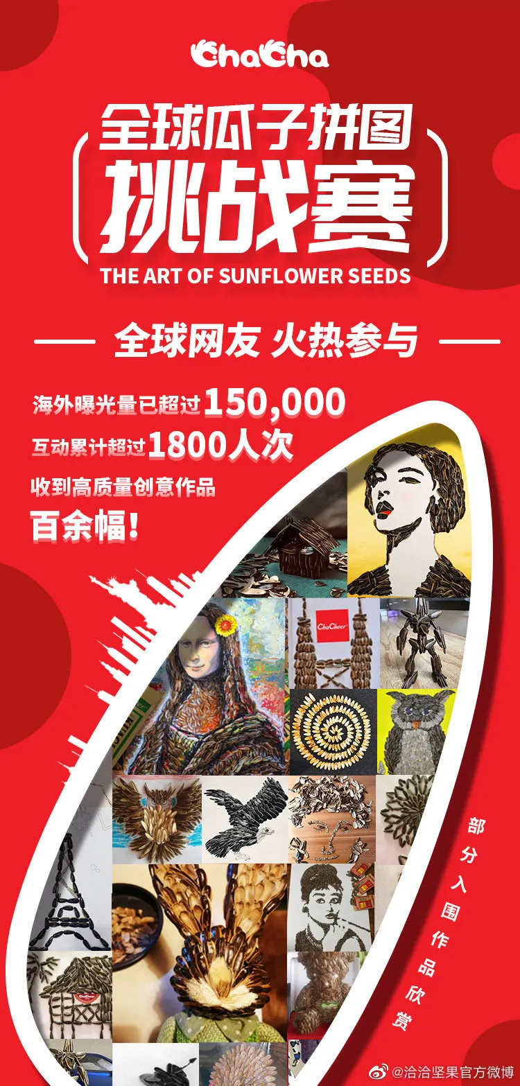 而且在这段特殊的日子里,嗑瓜子已成了一项不分男女老少的“全民运动”。就在ballbet宅家天天喊无聊的时候,国内外涌现出一大批玩瓜子的艺术家。看完他们在ballbet全球瓜子拼图大赛中提交的作品之后,你就会发现,原来嗑瓜子这么日常的事儿,有人也能秀出天际。